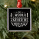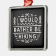 Hiker introvert funny quotes I would rather be hiking. Retro vintage black and white aesthetic mountain hike lovers sarcastic humor sayings themed home decor holiday season Christmas tree ornament.