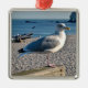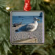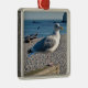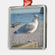 Ornement Carré Argenté Goéland perché sur une clôture en bois