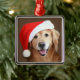 Ornement Carré Argenté Golden retriever avec le casquette de Père Noël