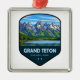 Ornement Carré Argenté Grand Teton National Park Shield
