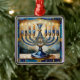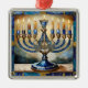 Ornement Carré Argenté Hanoukka bleue Menorah
