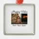 Ornement Carré Argenté Happy vibes enfants famille photo de Noël Invitati