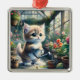 Ornement Carré Argenté Imaginaire Cute Chat Jardin Fleurs