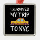 Ornement Carré Argenté J'Ai Survécu À Mon Voyage À New York