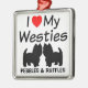 Ornement Carré Argenté J'Aime Mes Deux Chiens Westie Ornament