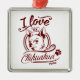 Ornement Carré Argenté J'aime mon Noël Chihuahua