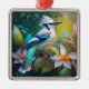 Ornement Carré Argenté Jay à ailes Turquoises en berceau