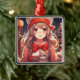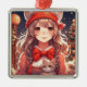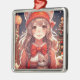 Ornement Carré Argenté Jolie fille Anime tenant Kitten Noël