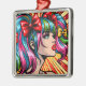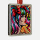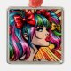 Ornement Carré Argenté Jolie Pop Art Comic Girl with Bows