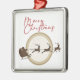 Ornement Carré Argenté Joyeux Noël Père Noël Sleigh Deer