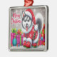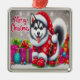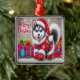 Ornement Carré Argenté Joyeux Noël Whimsical Siberian Husky Chien Xmas