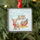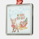 Ornement Carré Argenté Joyeux rennes de Noël et Père Noël Sleigh