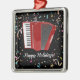 Ornement Carré Argenté L'Accordion Rouge, Joyeuses Fêtes,