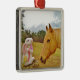 Ornement Carré Argenté Lapin blanc et Cheval jaune