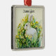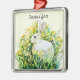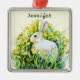 Ornement Carré Argenté Lapin et fleurs jaunes