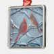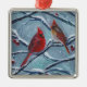 Ornement Carré Argenté Les oiseaux cardinaux hiver par Renee Lavoie