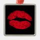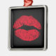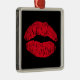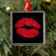 Ornement Carré Argenté Lèvres de baiser rouge sur noir