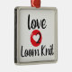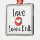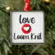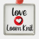Ornement de Noël carré avec lettres et ruban noirs et rouges, Idéal pour une personne qui aime les Knits de Loom.