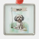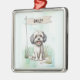 Ornement Carré Argenté Lowchen Watercolor Personalized Dog