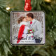 Mariés & Joyeux Mariage Photo Noël Ornement Carré - Écriture Noire
