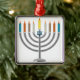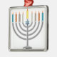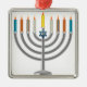Ornement Carré Argenté Menorah de Hanoukka