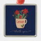 Ornement Carré Argenté Merci d'aidants naturels à Noël Poinsettias