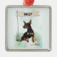 Ornement Carré Argenté Miniature Pinscher Watercolor Personalized Dog