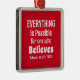 Ce joli ornement présente le puissant verset biblique de Marc 9:23 et un accueil saisonnier à l'arrière.
