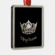 This Christmas ornament is shown with a photo print of a gleaming silver crown and text of Merry Christmas.