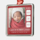 Celebrate your baby’s first Christmas with this beautifully personalized birth stats ornament, designed to become a treasured keepsake for years to come. This square metal ornament features a rich red background with crisp white accents, providing a bold yet elegant frame for your newborn’s photo and birth details. Customizable text includes your baby’s full name, birth date, time, weight, and length — making it a heartfelt way to remember such a meaningful day.