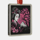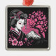 Ornement Carré Argenté Mont Fuji de Geisha japonais Fleur de cerisier jap