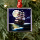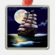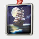 Ornement Carré Argenté Navire illuminé sur l'océan sous la lune