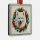 ORNEMENT CARRÉ ARGENTÉ NOËL ADORABLE SAMOYED CHIEN WREATING