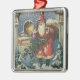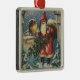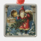 Ornement Carré Argenté Noël GreetingSanta et tourne-disque