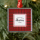 Ornement Carré Argenté Noël Tartan Plaid Baby's First Christmas