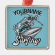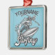 Ornement Carré Argenté NOM personnalisé Surfer Big Wave Skeleton Surfing
