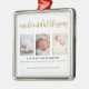 Élégant et simple ornement de Noël faire-part de naissance avec parties scintillant d'or texte qui dit, "Notre Belle Bénédiction" à la main lettrage et calligraphie style police. Avec 3 photos pour votre bébé. Fonctionne mieux avec les photos d'orientation de portrait ou d'orientation verticale. Remplacez les photos par votre propre photo de nouveau-né pour personnaliser cette carte.
