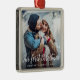Ornement Carré Argenté Notre premier script photo en couple de Noël