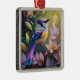 Ornement Carré Argenté Oiseau à poitrine jaune violet