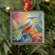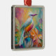 Ornement Carré Argenté Oiseau à poitrine rouge à bec rose