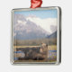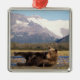 Ornement Carré Argenté ours Brown, grizzli s'étirant sur le dos