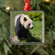Ornement Carré Argenté Panda géant debout sur une pierre