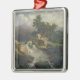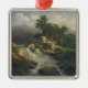 Ornement Carré Argenté Paysage de forêt avec la cascade