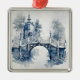 Ornement Carré Argenté Paysage de style Delft bleu et blanc