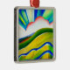 Ornement Carré Argenté Paysage de Sunburst Rainbow