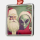 Ornement Carré Argenté Père Noël avec l'Alien de l'espace Noël OVNI