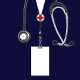 Easy to personalize medical design featuring hospital scrubs. Edit text to add name.