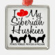 Ornement Carré Argenté Personnalisé J'Aime Mes Quatre Huskies Sibériens