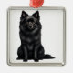 ORNEMENT CARRÉ ARGENTÉ PETIT CHIEN À POPPER DE SCHIPPERKE NOIR