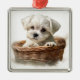 ORNEMENT CARRÉ ARGENTÉ PETIT CHIEN PETIT ET BLANC ADORABLE